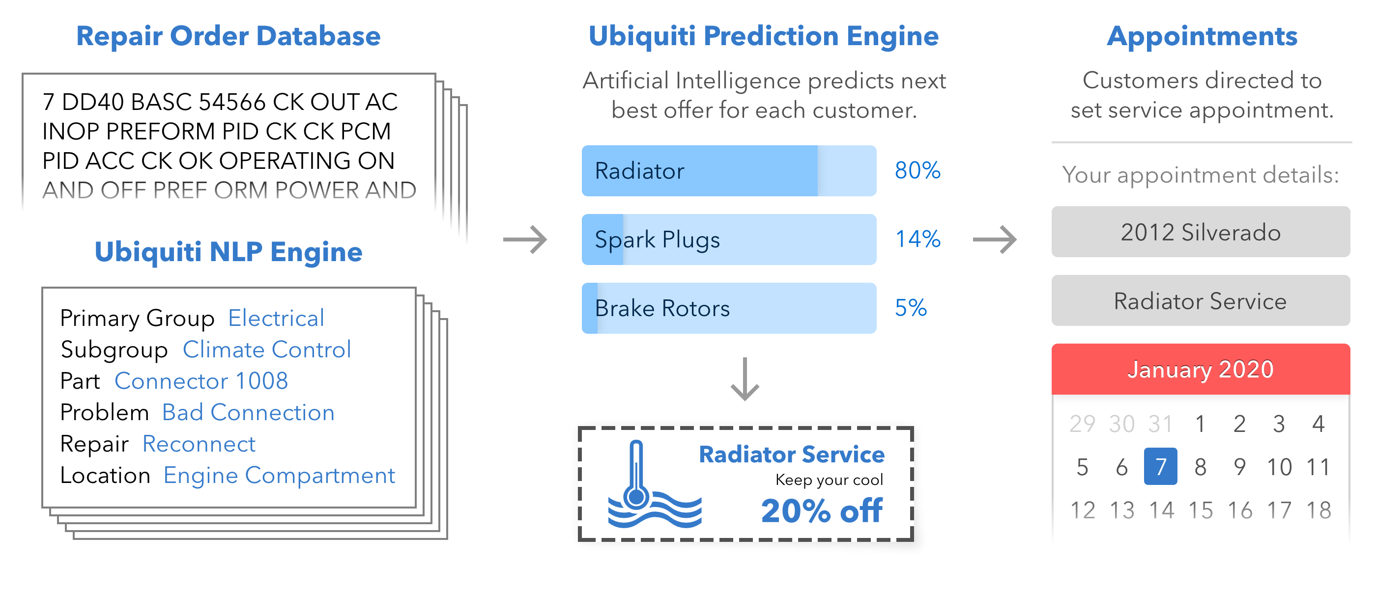 Ubiquiti’s AI-fueled algorithms generate highly relevant, personalized vehicle service offers that resonate with customers to drive higher campaign performance and revenue.